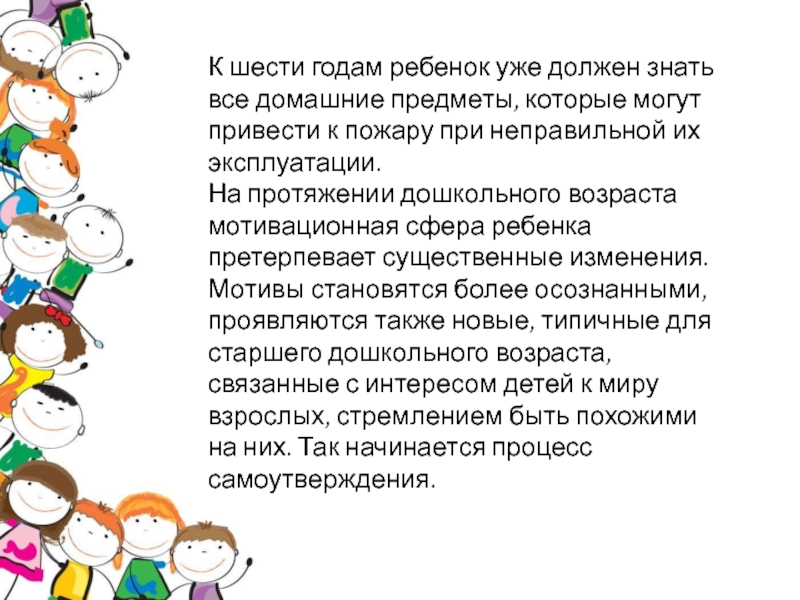 На протяжении дошкольного возраста мотивационная сфера ребенка претерпевает существенные изменения. Мотивы становятся более осознанными, проявляются также новые, типичные для старшего дошкольного возраста, связанные с интересом детей к миру взрослых, стремлением быть похожими на них. Так начинается процесс самоутверждения.