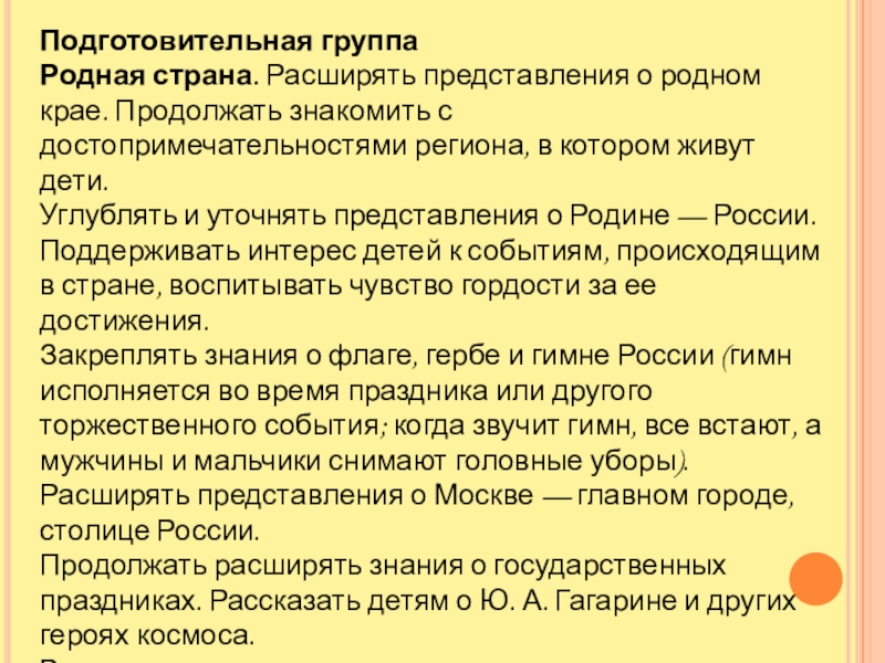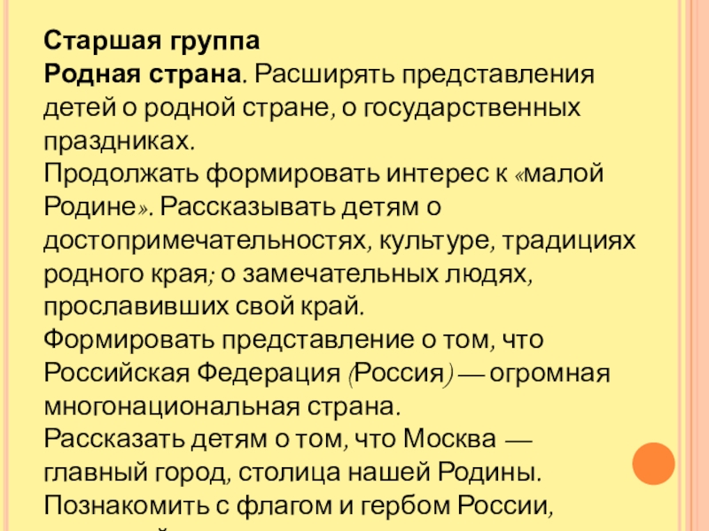 Родная страна. Расширять представления детей о родной стране, о государственных