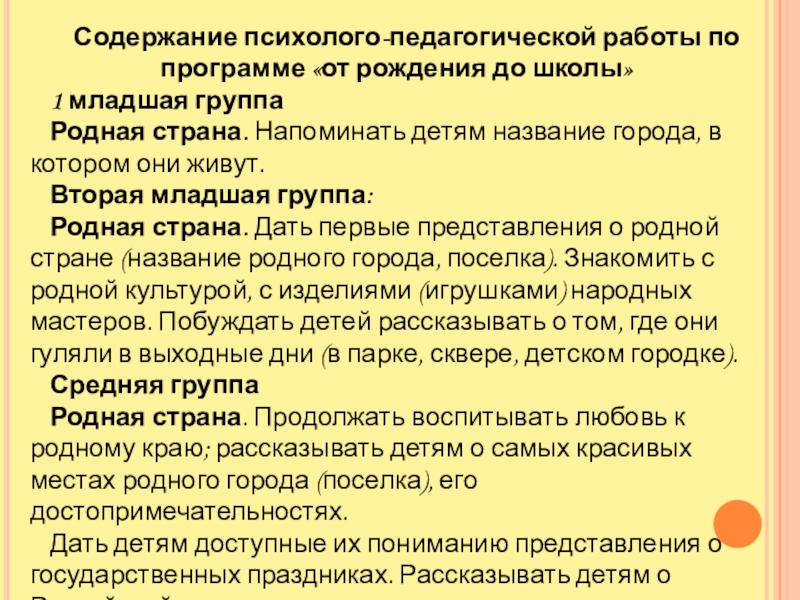 Слайд 6Содержание психолого-педагогической работы по программе «от рождения до школы»