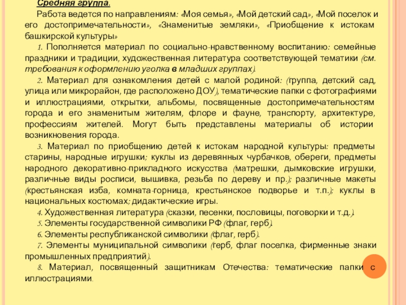 3. Тематическая папка «Мой край»: карта и символика Республики Башкортостан, портрет Главы республики; материал, знакомящий, детей со славным прошлым родного края (история городов и их настоящее, сельское хозяйство).