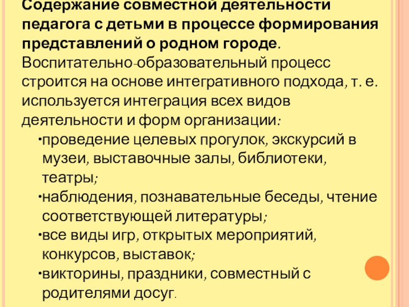 Слайд 9Содержание совместной деятельности педагога с детьми в процессе формирования представлений о