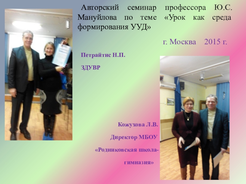 Слайд 20Авторский семинар профессора Ю.С. Мануйлова по теме «Урок как среда формирования