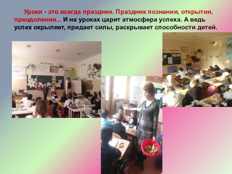 преодоления... И на уроках царит атмосфера успеха. А ведь успех окрыляет, придает силы, раскрывает способности детей.