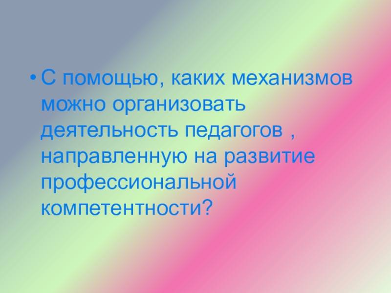 Слайд 9С помощью, каких механизмов можно организовать деятельность педагогов , направленную на