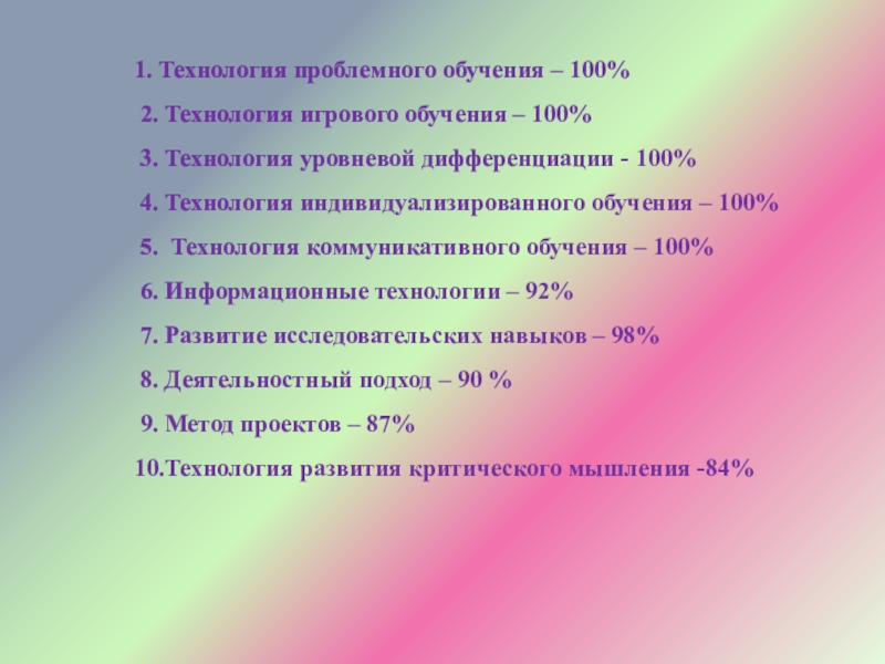 Слайд 231. Технология проблемного обучения – 100%