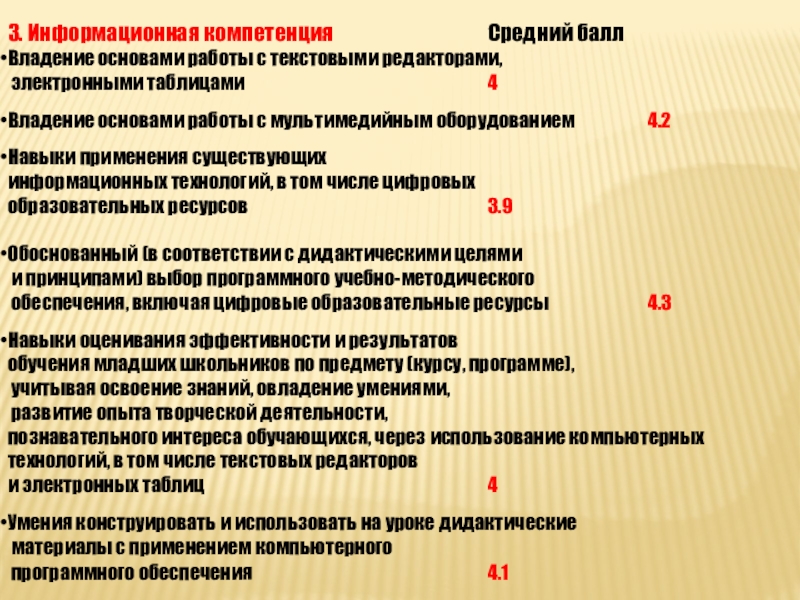 Слайд 123. Информационная компетенция Средний балл