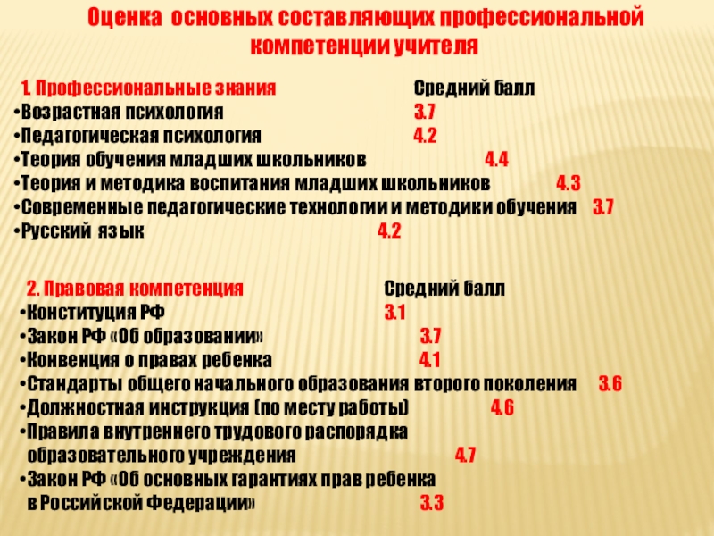 Слайд 11 Оценка основных составляющих профессиональной компетенции учителя