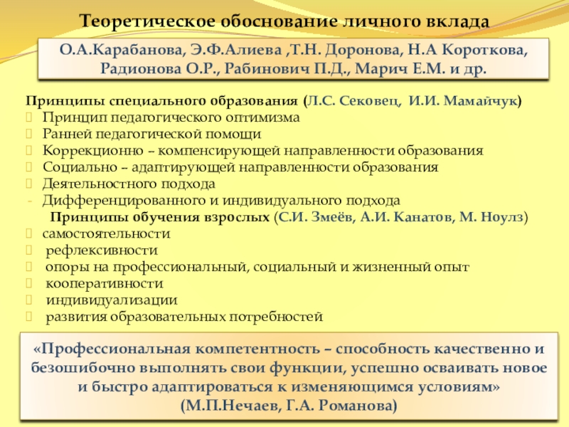 О.А.Карабанова, Э.Ф.Алиева ,Т.Н. Доронова, Н.А Короткова, Радионова О.Р., Рабинович П.Д., Марич Е.М. и др.