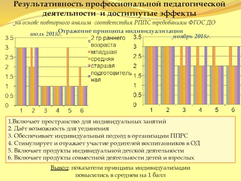 Вывод: показатели принципа индивидуализации повысились в среднем на 1 балл