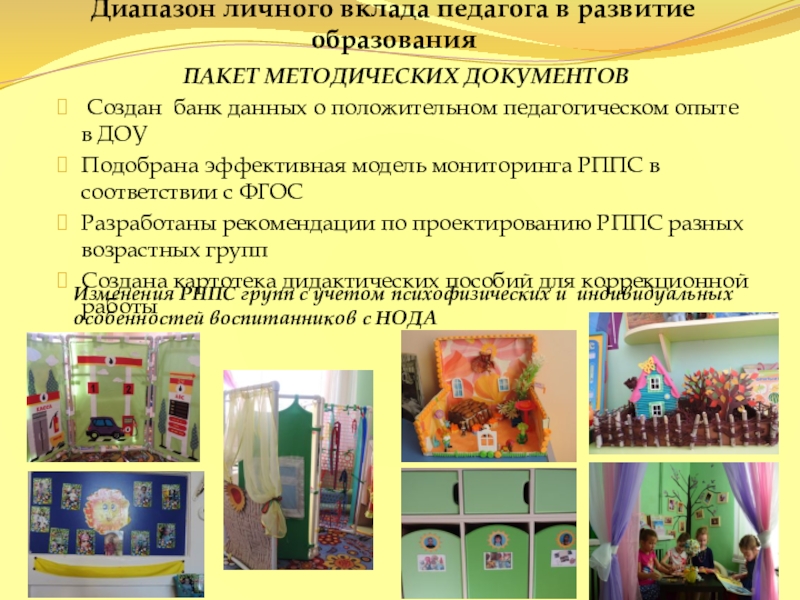 Изменения РППС групп с учетом психофизических и индивидуальных особенностей воспитанников с НОДА
