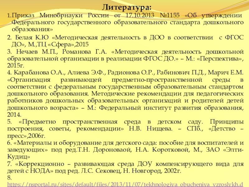 А.П. Усова, С.Л. Новоселова, В.А. Петровский, Н.А Рыжова, О.А.Карабанова, Э.Ф.Алиева ,Т.Н. Доронова, Н.А Короткова, Л.С. Сековец -методические рекомендации организации РППС