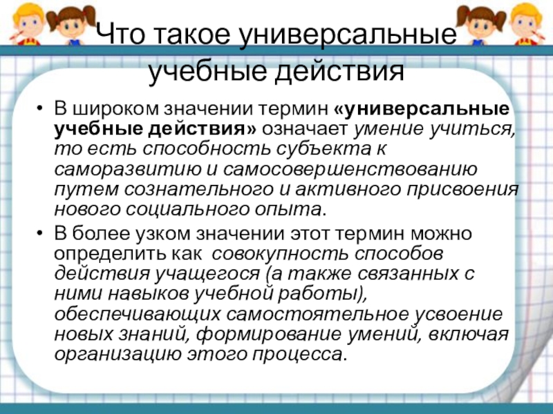 Освоение УУД встраивается в систему получения новых предметных знаний и нового социального опыта.