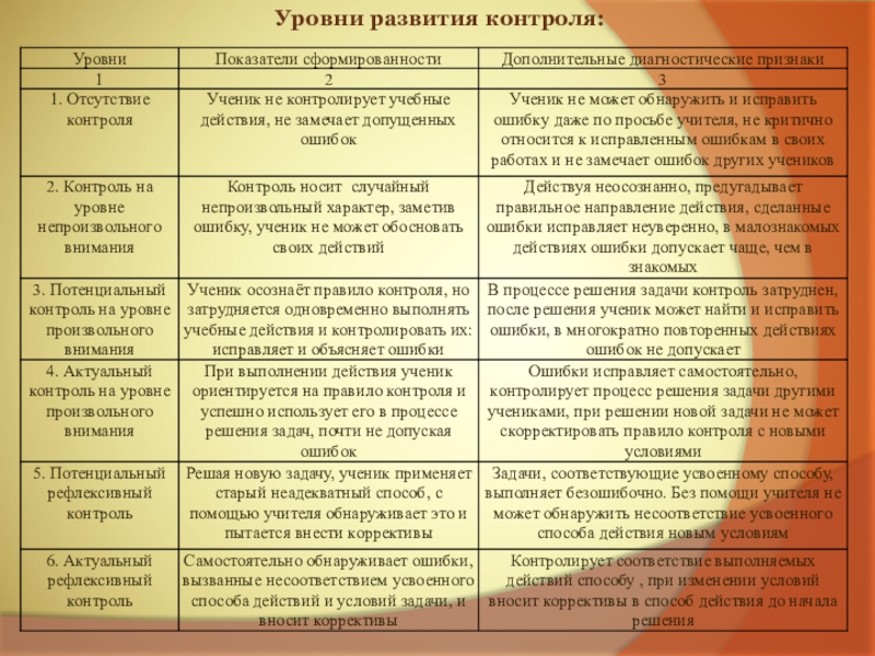 “Действие контроля состоит в сопоставлении воспроизводимого ребенком действия и его результата с образцом через предварительный образ”.
