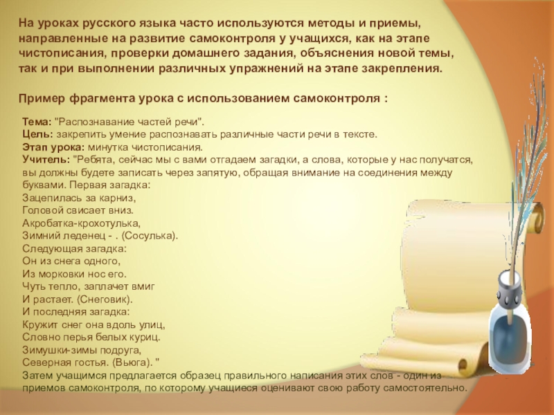 Развитие самоконтроля у младших школьников на уроках русского языка.
