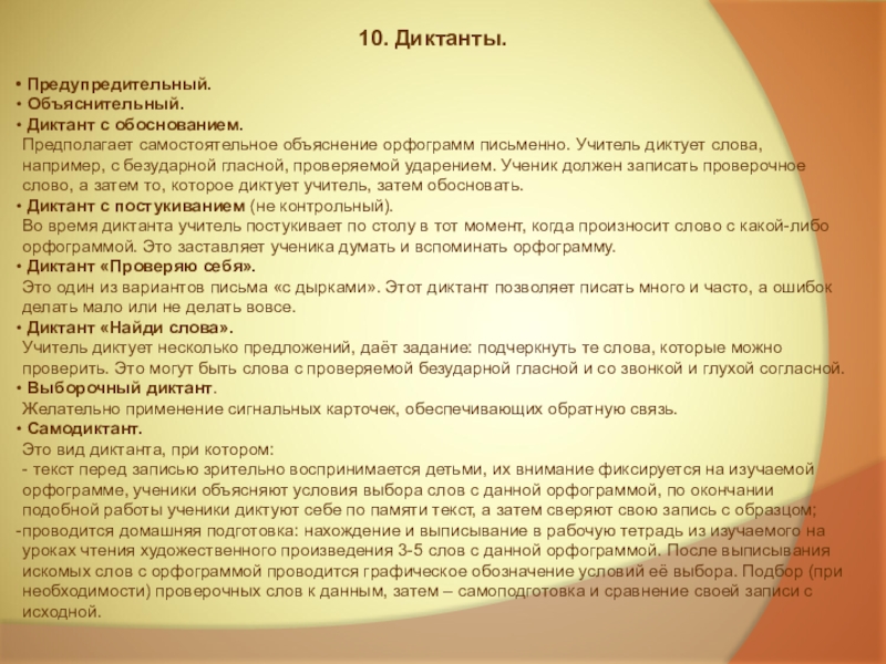 Приём, предложенный М.М. Разумовской, который она сама называет письмо с буквенной дробью: на местах орфограмм пишется весь набор букв, которыми может быть обозначен данный звук, например, в о да, кру г .