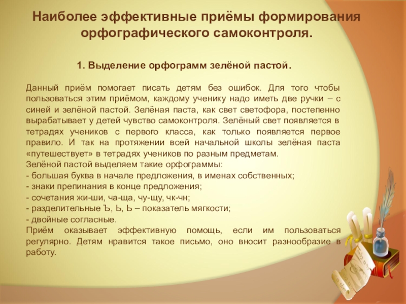 Затем учащимся предлагается образец правильного написания этих слов - один из приемов самоконтроля, по которому учащиеся оценивают свою работу самостоятельно.
