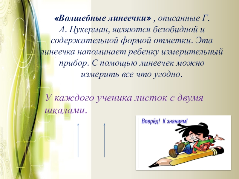 Слайд 13«Волшебные линеечки» , описанные Г.А. Цукерман, являются безобидной и содержательной формой отметки.