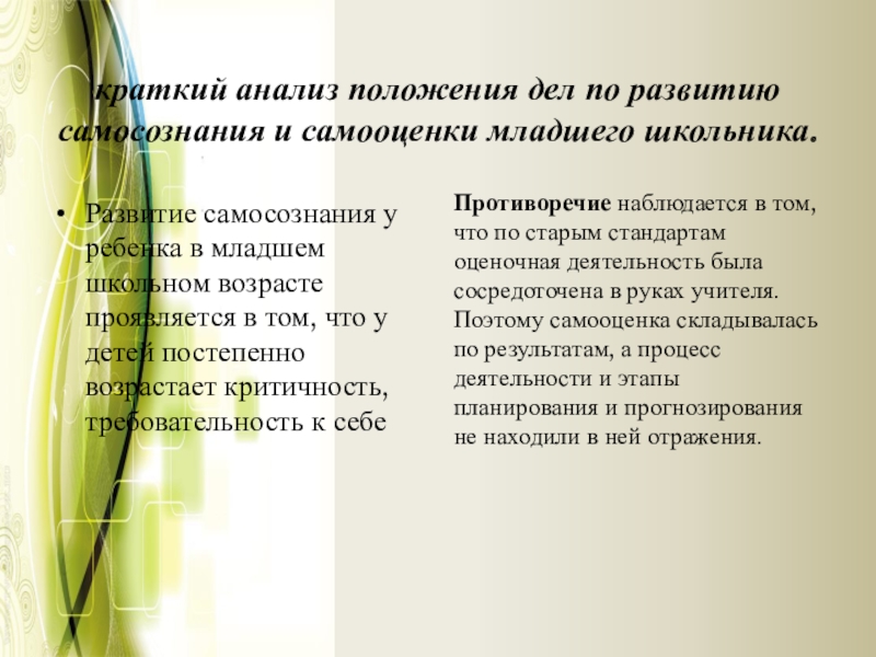 краткий анализ положения дел по развитию самосознания и самооценки младшего