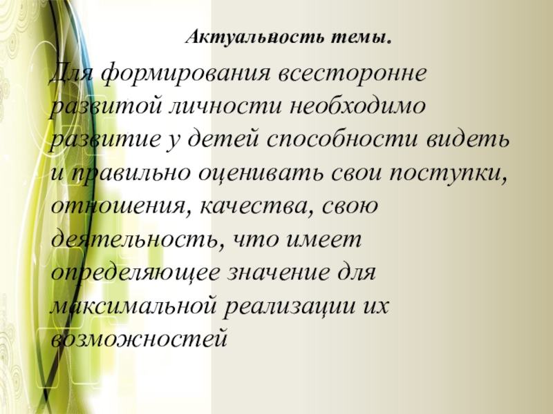 способности видеть и правильно оценивать свои поступки, отношения, качества, свою деятельность, что имеет определяющее значение для максимальной реализации их возможностей