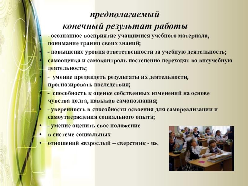 - уверенность в способности освоения для самореализации и самоутверждения социального опыта;