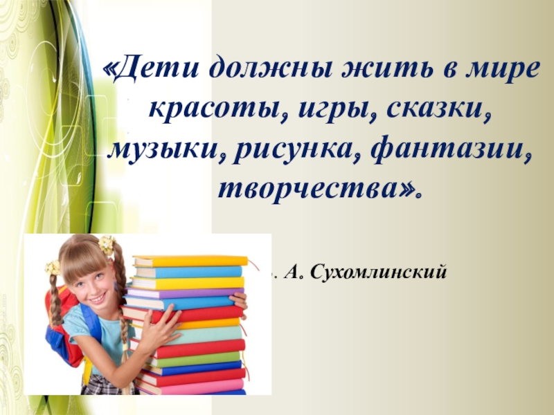 Слайд 22«Дети должны жить в мире красоты, игры, сказки, музыки, рисунка, фантазии,