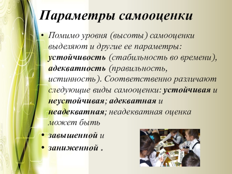 Слайд 8Параметры самооценки