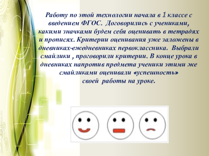 Слайд 11Работу по этой технологии начала в 1 классе с введением ФГОС.
