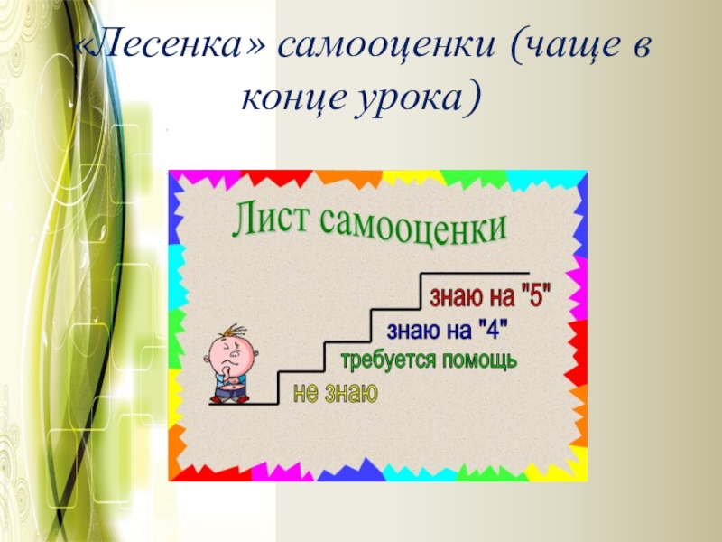 Слайд 18«Лесенка» самооценки (чаще в конце урока)