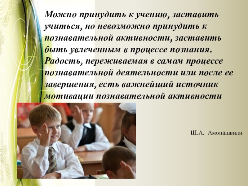 Можно принудить к учению, заставить учиться, но невозможно принудить к познавательной