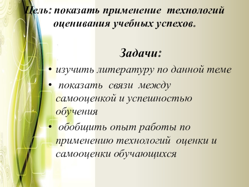 Цель: показать применение технологий оценивания учебных успехов.