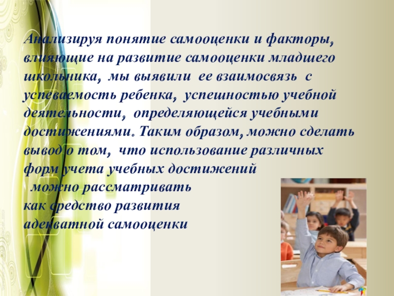Анализируя понятие самооценки и факторы, влияющие на развитие самооценки младшего