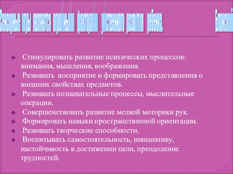 Стимулировать развитие психических процессов: внимания, мышления, воображения.