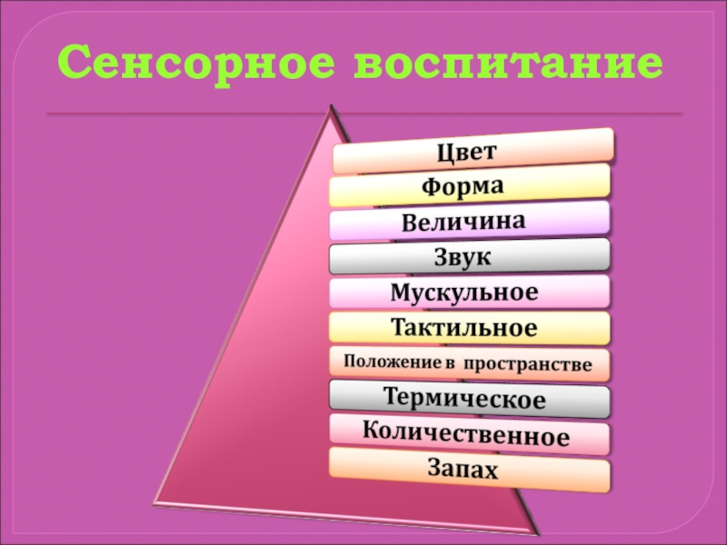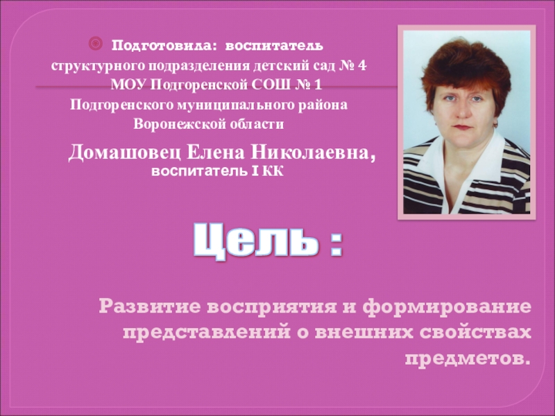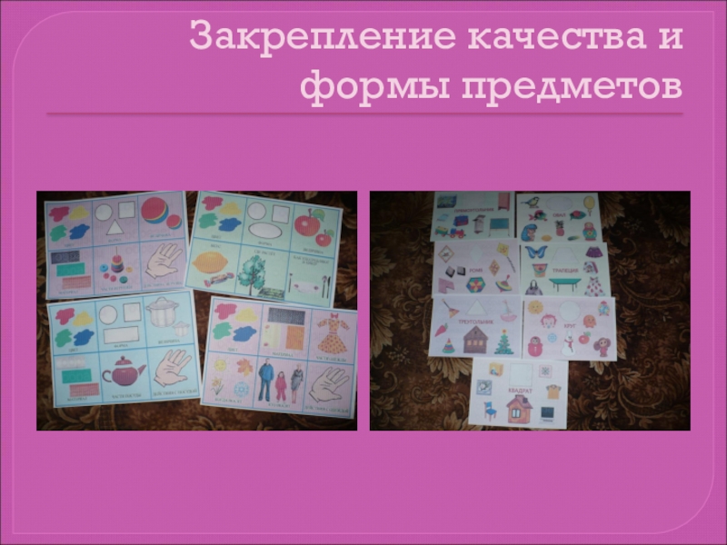Развивать восприятие и формировать представления о внешних свойствах предметов.