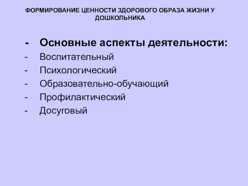 на сохранение здоровья и активное формирование здорового образа жизни