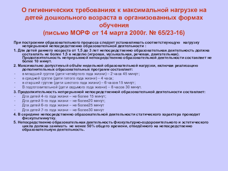 При построении образовательного процесса следует устанавливать соответствующую нагрузку непрерывной непосредственно образовательной деятельности :