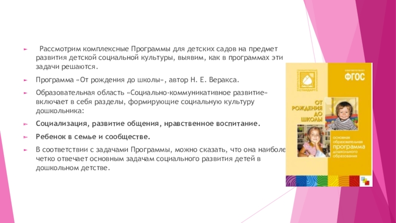 Слайд 8 Рассмотрим комплексные Программы для детских садов на предмет развития детской социальной