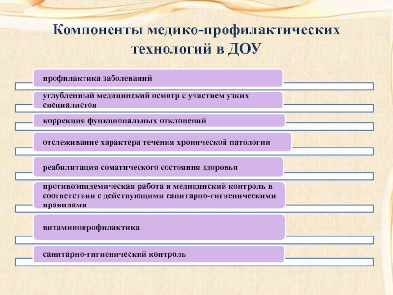 Слайд 10Компоненты медико-профилактических технологий в ДОУ