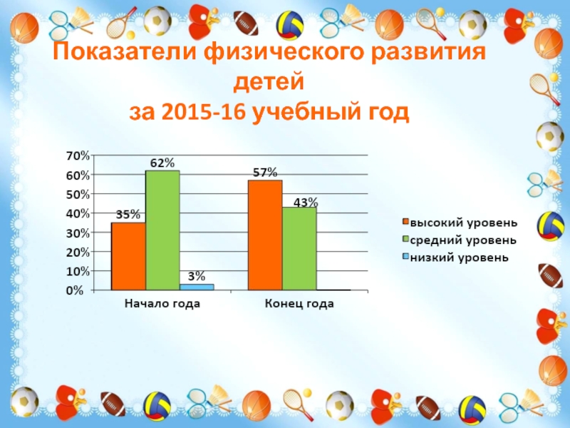 Слайд 18 Показатели физического развития детей за 2015-16 учебный год