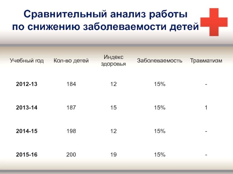 Слайд 15Сравнительный анализ работы по снижению заболеваемости детей