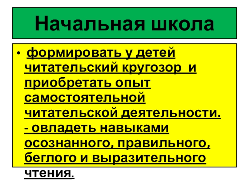 Начальная школа формировать у детей читательский кругозор и приобретать опыт самостоятельной читательской деятельности.