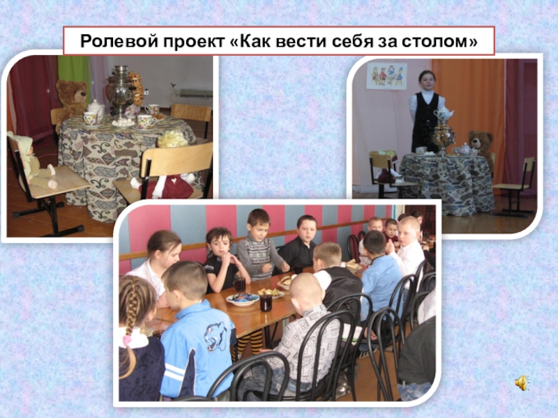 Слайд 39Ролевой проект «Как вести себя за столом»