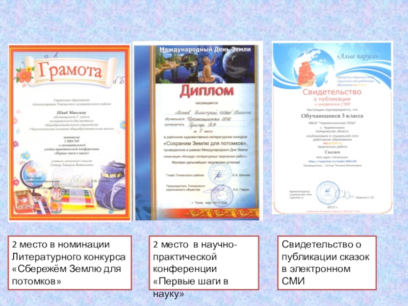 Слайд 562 место в номинации Литературного конкурса «Сбережём Землю для потомков»