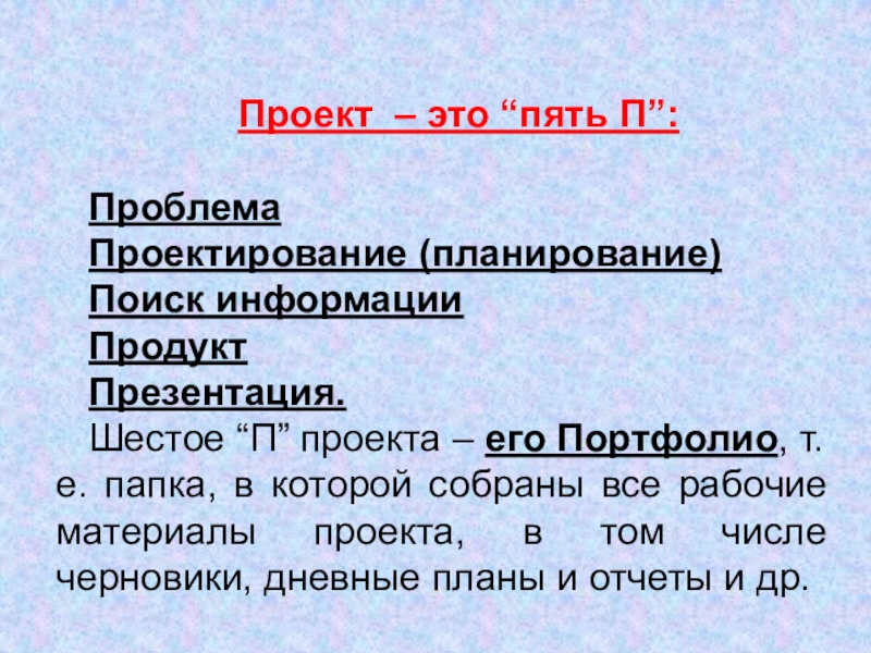 Слайд 5Проект (от лат. «projectus», буквально-брошенный вперёд) замысел, план.