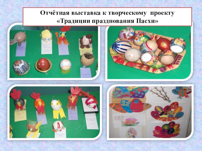 Слайд 40Отчётная выставка к творческому проекту «Традиции празднования Пасхи»