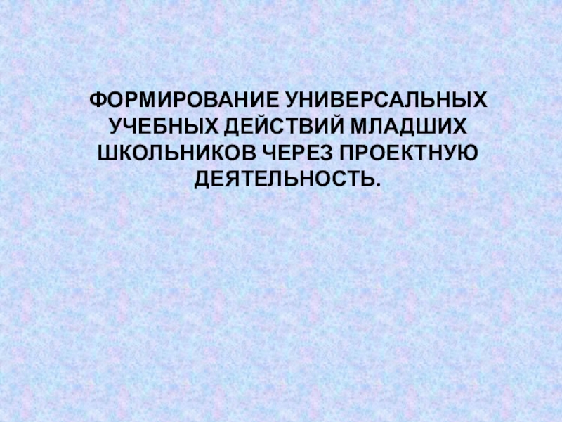 Формирование универсальных учебных действий младших школьников через проектную деятельность.