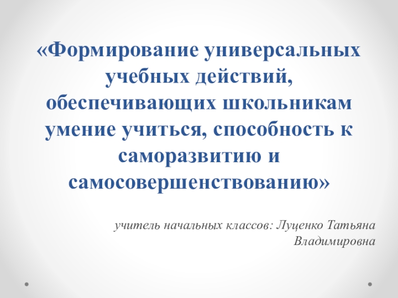 учитель начальных классов: Луценко Татьяна Владимировна