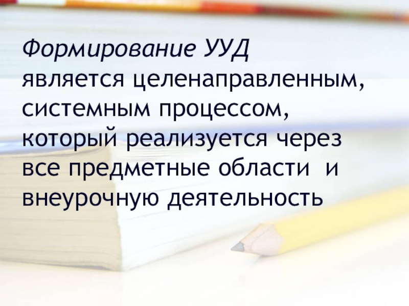 Слайд 15Формирование УУД является целенаправленным, системным процессом, который реализуется через все предметные области