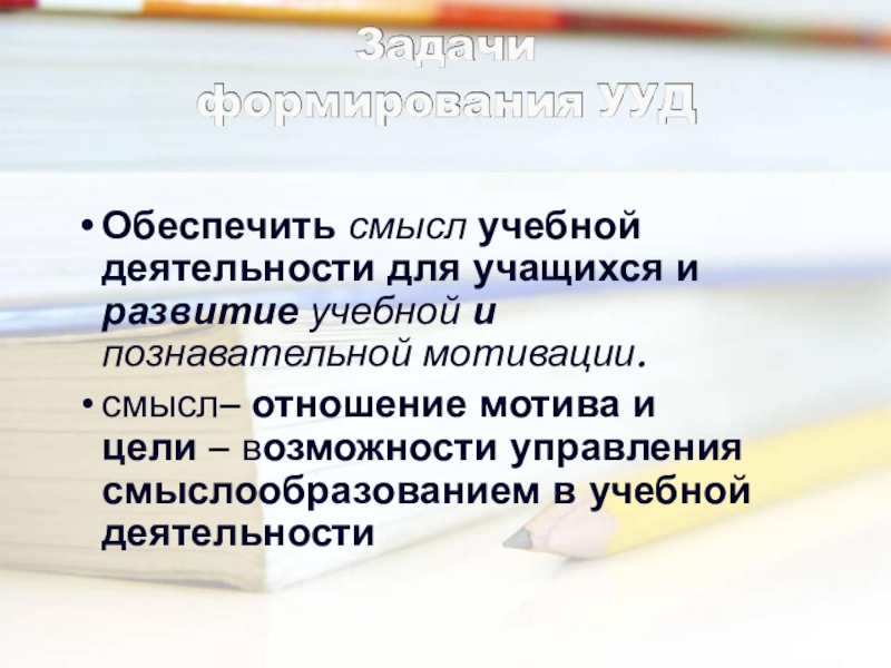 Обеспечить смысл учебной деятельности для учащихся и развитие учебной и      познавательной мотивации.смысл–