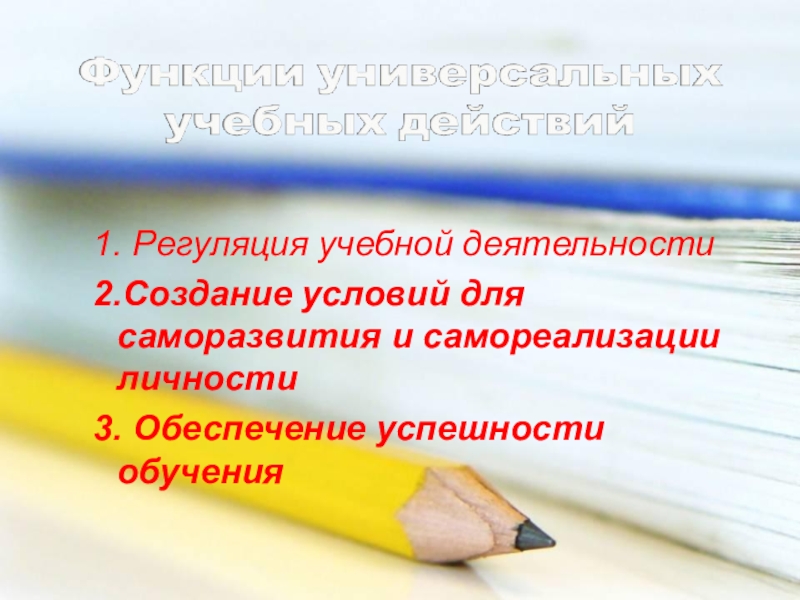 1. Регуляция учебной деятельности2.Создание условий для саморазвития и самореализации личности3. Обеспечение успешности обучения