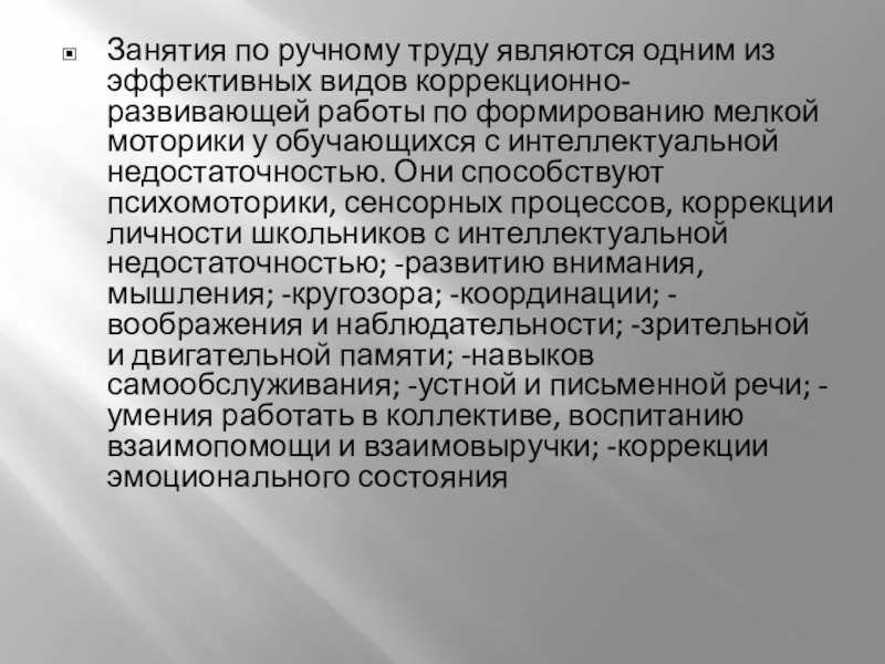 Слайд 9Занятия по ручному труду являются одним из эффективных видов коррекционно-развивающей работы